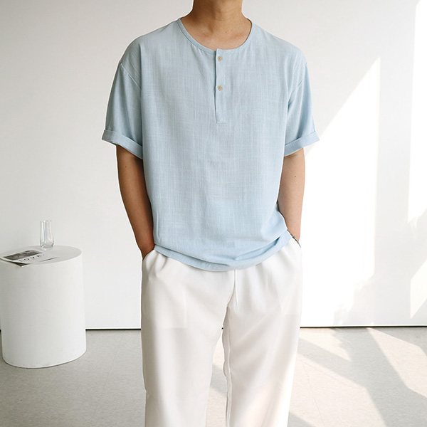 특히 마가 혼방된 남성 헨리넥티셔츠는 여름 데일리룩부터, 오피스룩까지 다양하게 코디할 수 있어, s/s시즌 셔츠 못지 않게 베이직 웨어로 꾸준히 사랑받는 아이템 중 하나입니다.