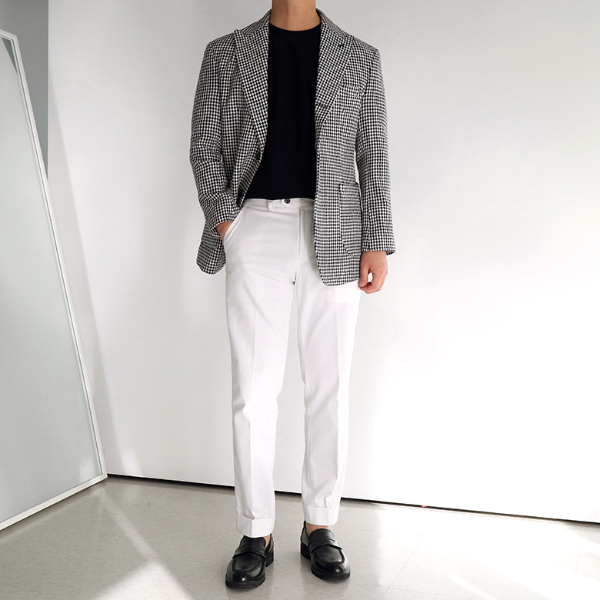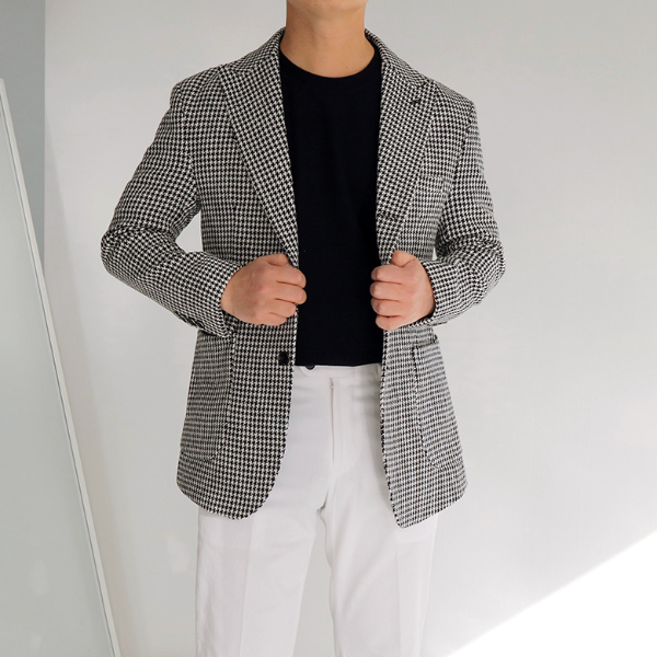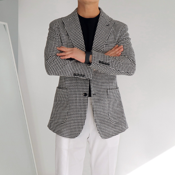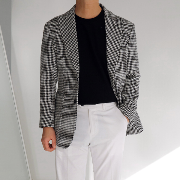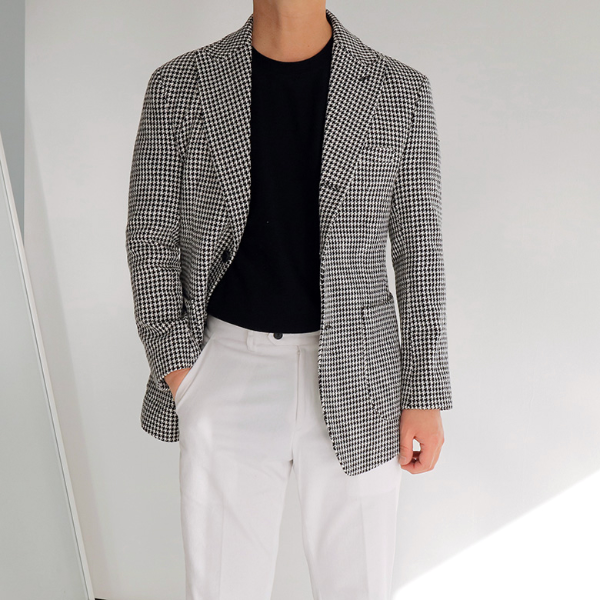 가을 남자 결혼식 하객룩, 고급스러운 트위드 블레이저 자켓으로 포인트