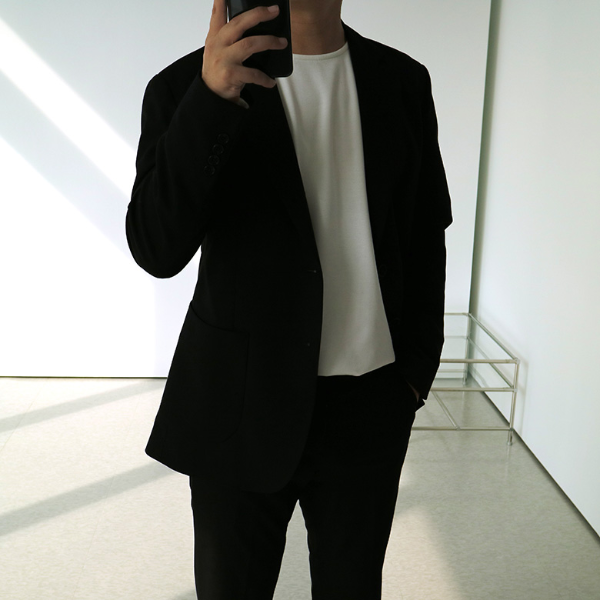셔츠가 기본으로 무난하지만, 스타일에서 편안하고 샤프한 이미지에는 남자 정장 티셔츠 또한 훌륭한 선택이 될수 있겠습니다.