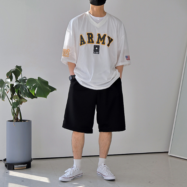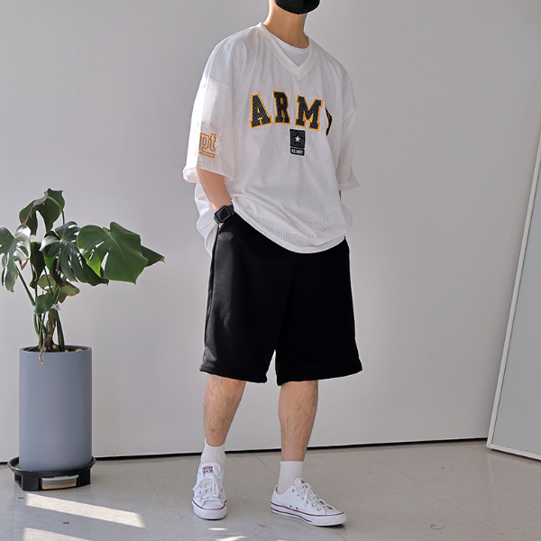 2000년대 무드가 느껴지는 스포티하면서도 스트릿한 분위기의 남자 메쉬 져지 티셔츠는 여름 Y2K 스타일의 패션을 대표하는 아이템 중 하나이죠.