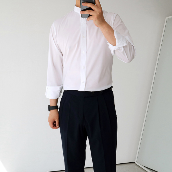 세미수트 이너로 잘 어울리는 화이트 차이나 와이셔츠